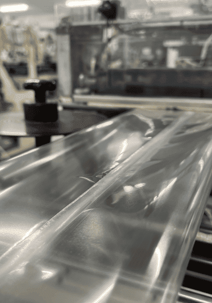この新工場では、製袋加工の能力を前工場の2.5倍にアップさせ、加工エリアの区画分けの強化や、エアーシャワーを完備しています。